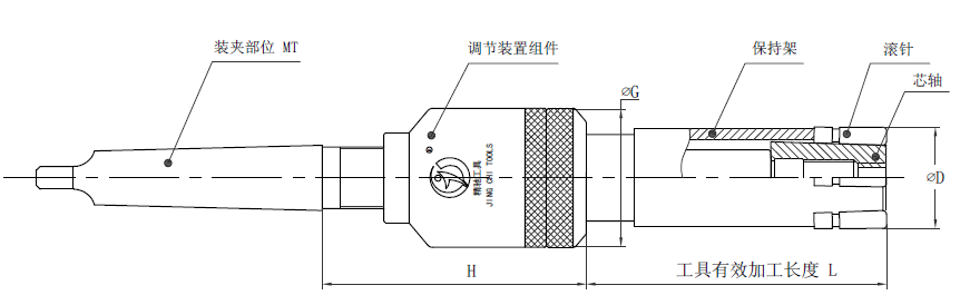 注:孔徑Φ26-68的滾壓刀有效加工長度從B檔開始柄部標(biāo)配MT3,如需其他型號(hào)規(guī)格需定做。加工孔徑Φ40以上的滾壓刀,由于調(diào)節(jié)組件的外徑比加工孔徑小,可通過加長柄部尺寸的方法增加加工長度。
